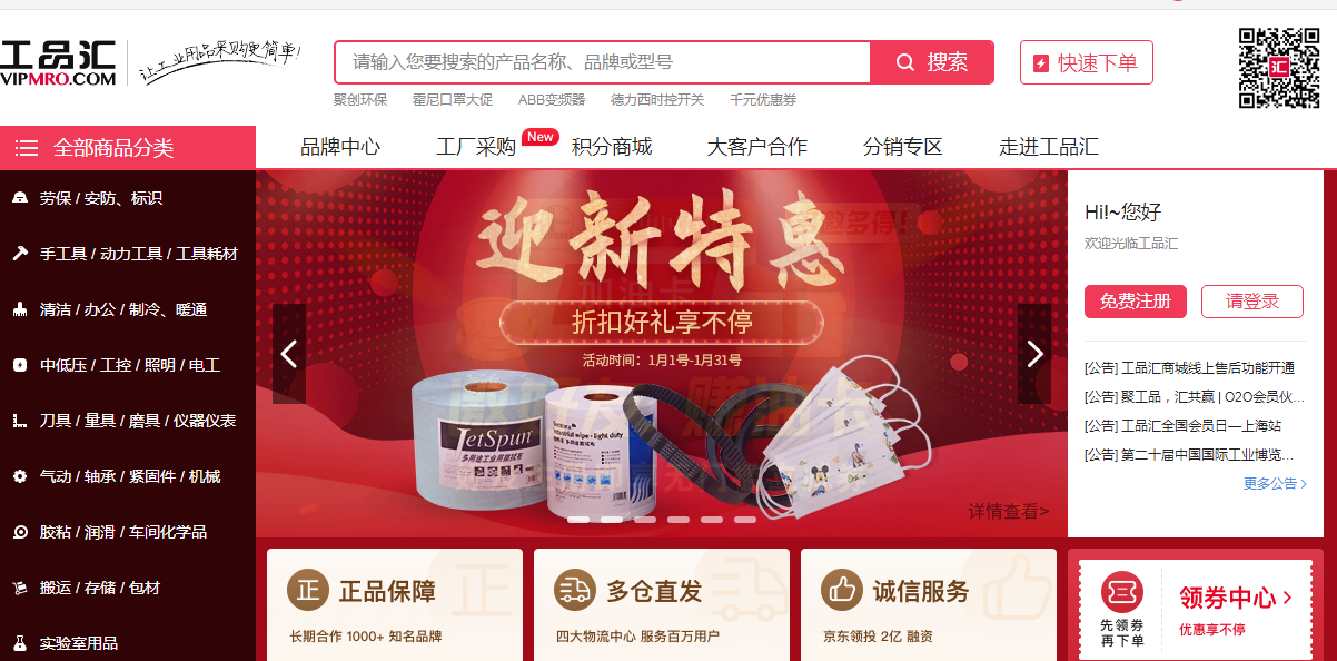 自武汊疫情发生后,工品汇联动快递加配货,并携手各合作方紧急调货,协助众多企业客户预备物资,应对复工后的防护工作。同舟共济,众志成城,工品汇与您同在坚决打赢这场防疫站。《按需采购登记表》疫情当前,工品汇携手各品牌方紧急调货,为更合理有效地分配各类物资,工品汇平台现针对紧缺物资采用登记式销售(医疗机构、政府机关、企事业单位优先),请各单位按需登记,我们的客服人员会根据登记信息与您联系,感谢!(限机构、企业类客户登记,请知悉)点击链接登记:https://www.wjx.cn/jq/55403656.aspx截止当前,工品汇已累计售出防护口罩近百万件;一次性手套及防护服近10万盒;护目镜消毒液、测温仪数十万件。