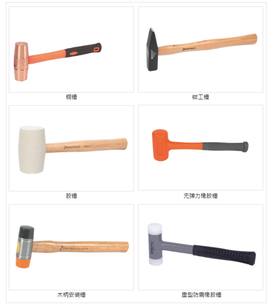 有:铜锤,钳工锤,胶锤,无弹力橡胶锤,木柄安装锤,重型防震橡胶锤等。