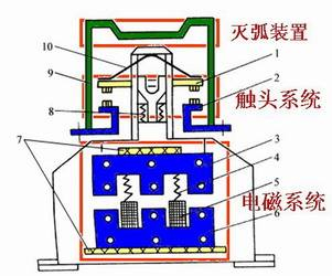 接触器:其主要作用是用来接通或断开主电路。容量大的接触器一般都带有灭弧罩。