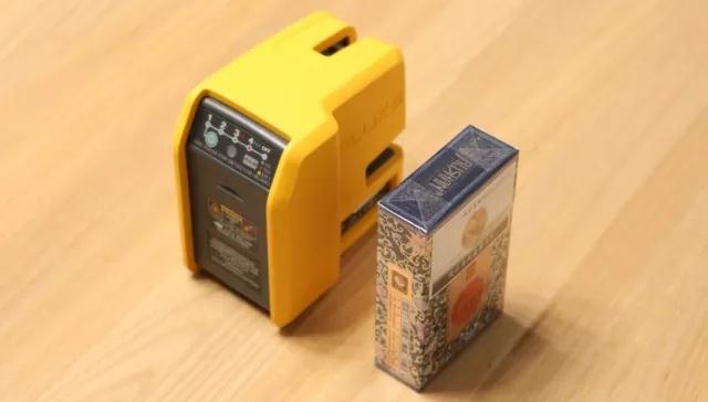 水平仪的整体尺寸还是十分小巧,在佩戴保护壳的情况下长宽均为9cm,厚度为5.6cm。跟一包香烟比较高度几乎相同,厚度则有为香烟的两倍。外出携带十分的方便,没有那种圆柱形水平仪臃肿的体型。