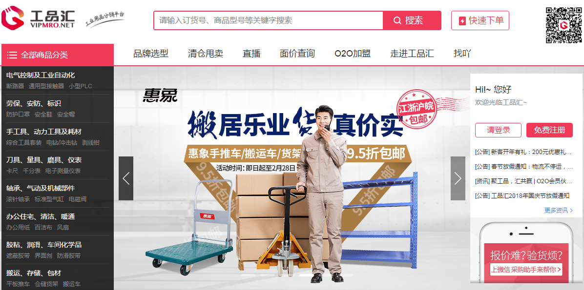 1. 工品汇分销——工品汇推出的工业用品分销平台,所有产品均来自于生产厂商授权供货,在保证质量的前提下,因为需要长期合作,价格上可以提供用户优惠的价格,批发采购,价格更优惠。