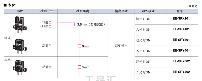 欧姆龙 反射型接插件型微型光电传感器;EE-SPY301