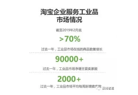以淘宝企业服务工业品市场为例,截至2019年2月底,周均近2000商家入淘工业品市场,工业品市场在线商品数量与主营卖家数同比均有大幅增长。
